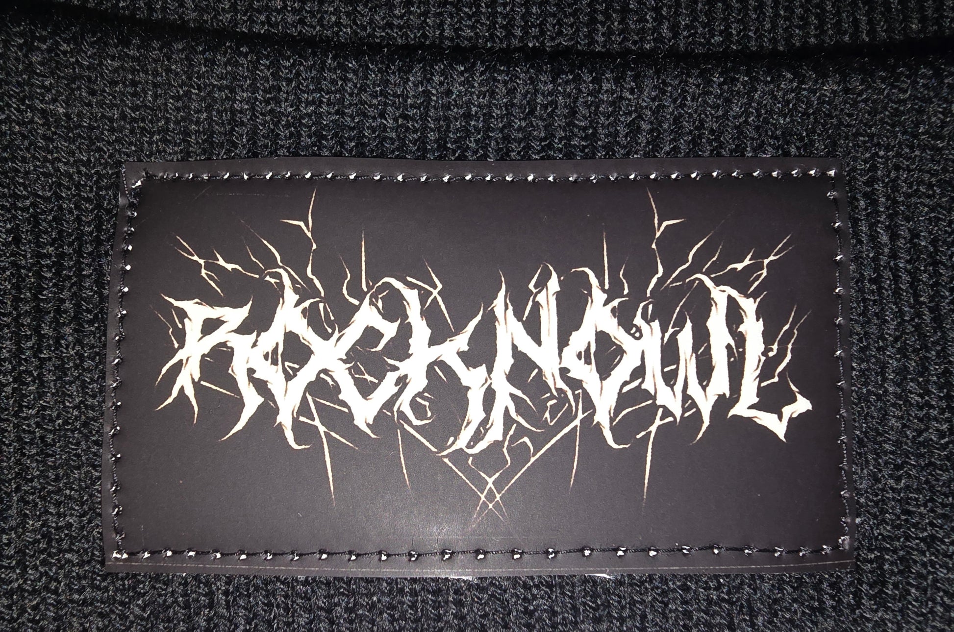 Das Design ist auf einen schwarzen Kunstlederpatch eingebrannt.