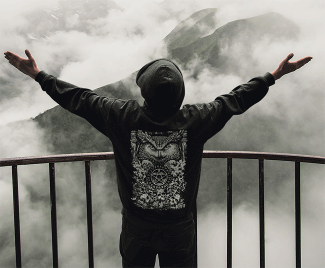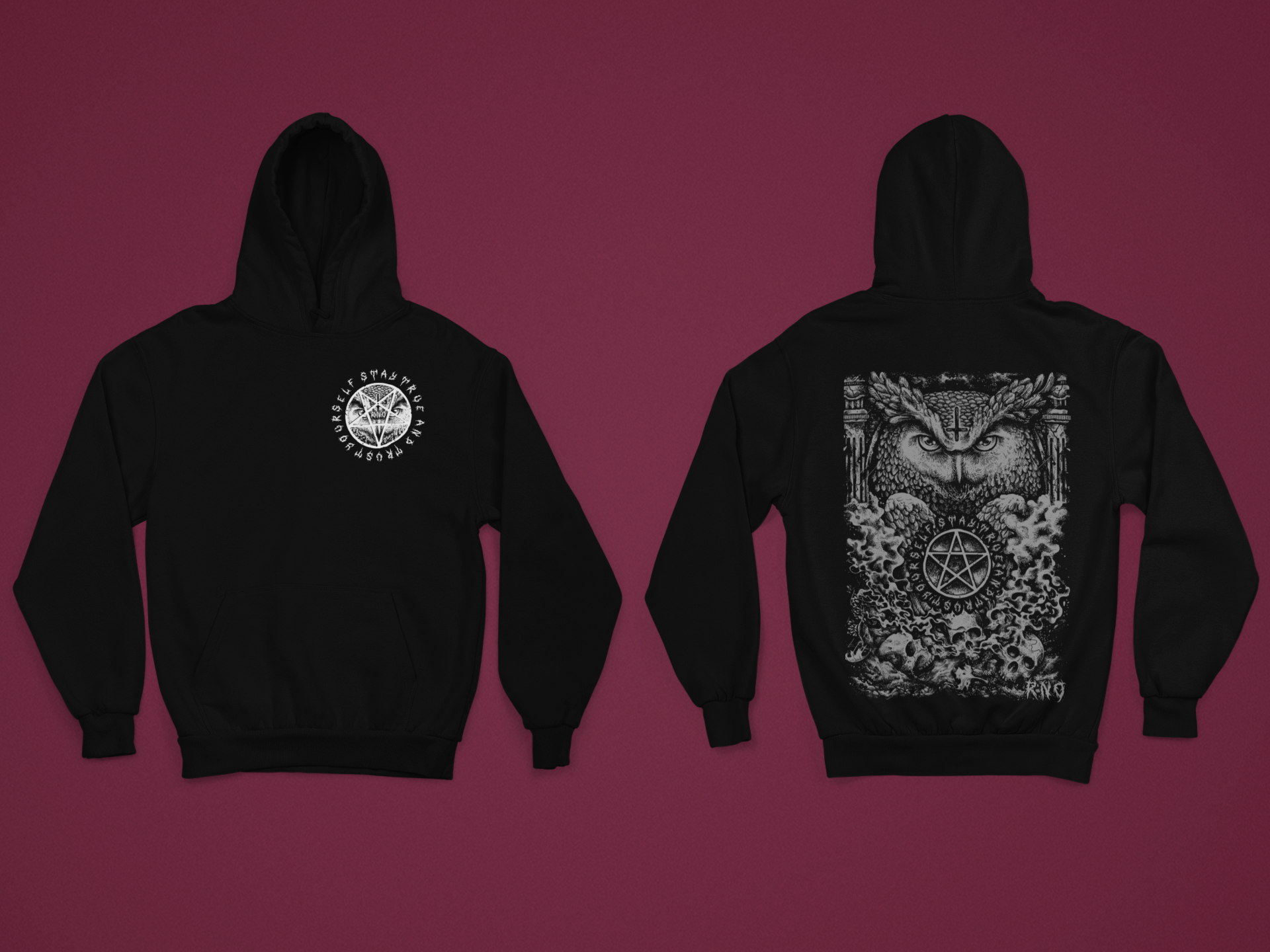 Bei dem Motiv ist alles eingebaut was ein wahrer Eulen und Metalfan braucht. Umgedrehtes Kreuz, Pentagram, Totenköpfe und das alles verbunden mit unserer Eule. Natürlich darf unser Motto: Stay True and Trust Yourself nicht fehlen.