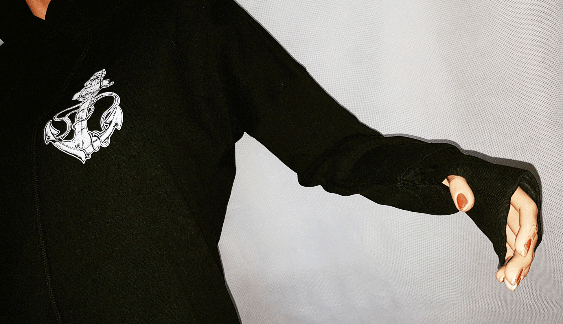 Ein Kapuzenpulli als Kleid... Megagut sind auch die beiden Daumenlöcher. Natürlich ist der Hoodie auch Fair Trade.