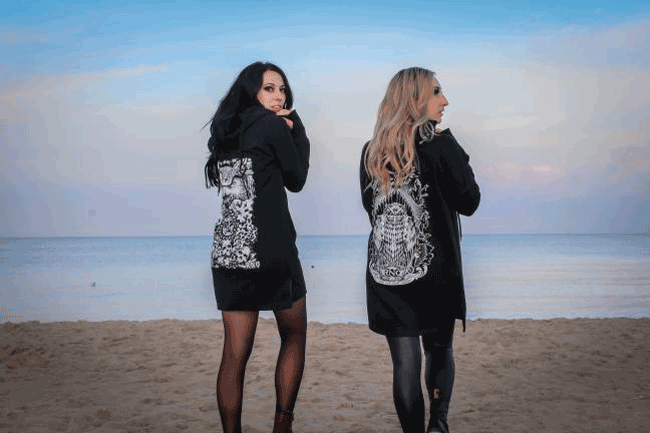 Model "Jenny" trägt hier unser Hoodie Dress Gowlt in Größe "S"