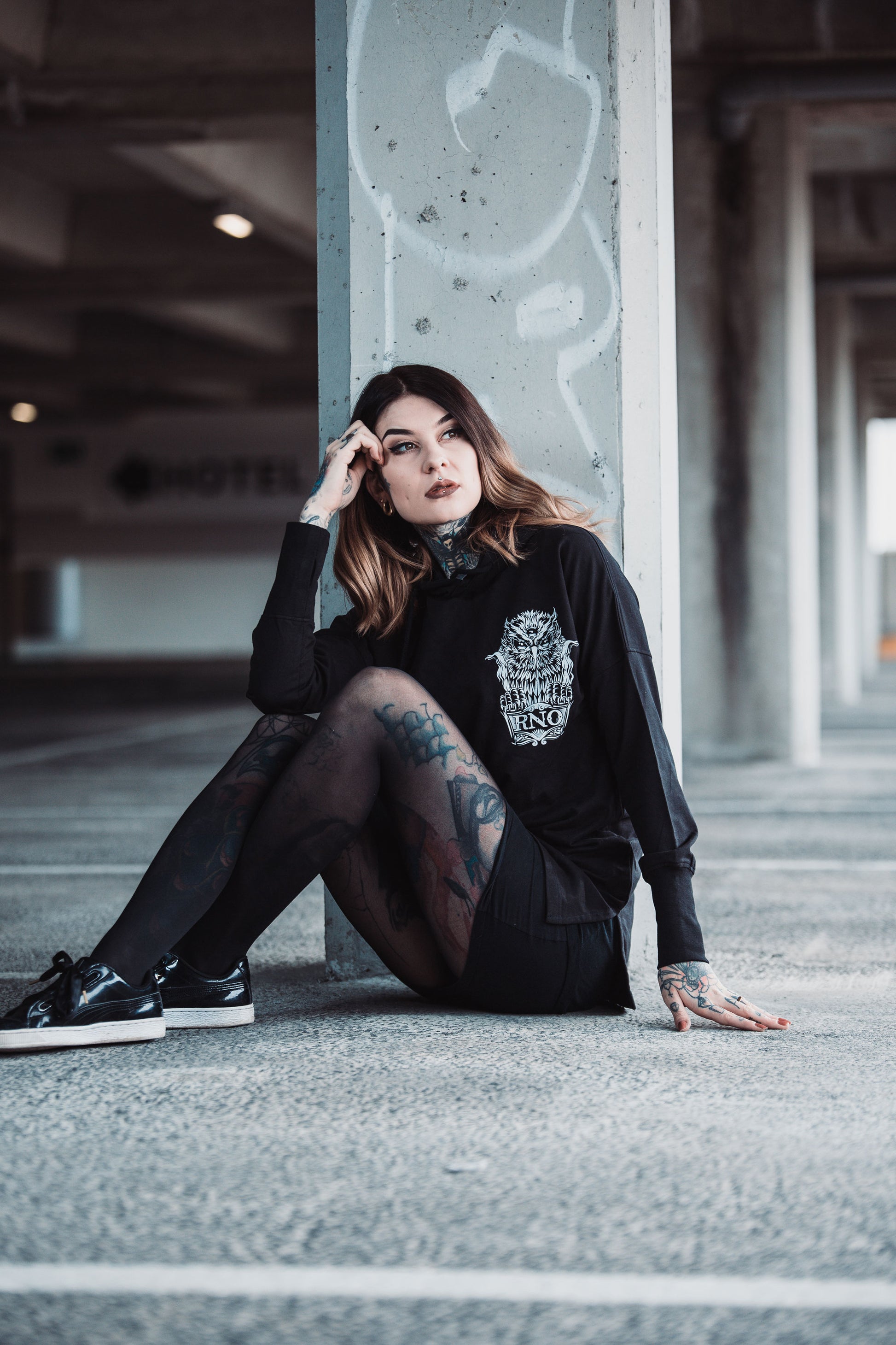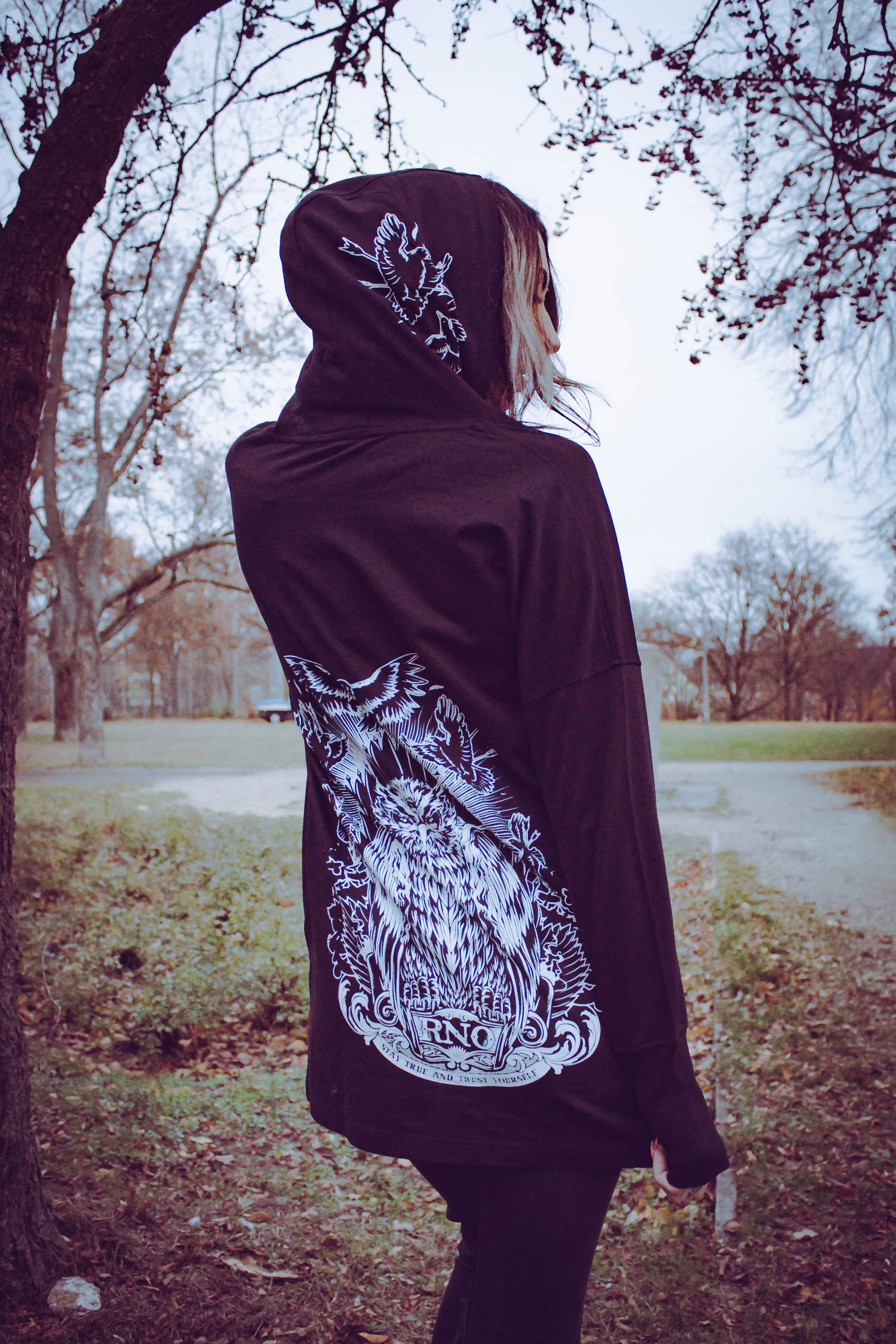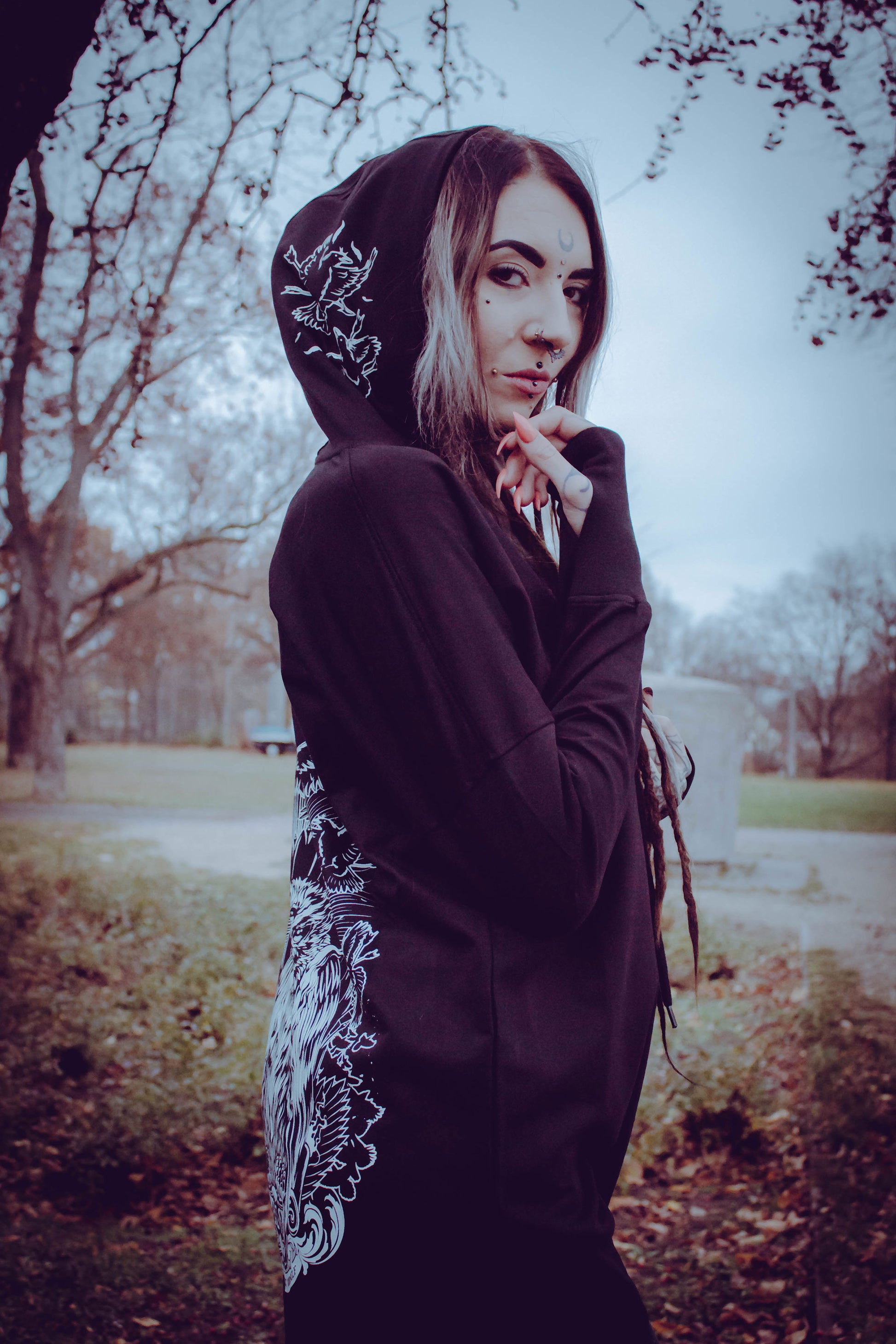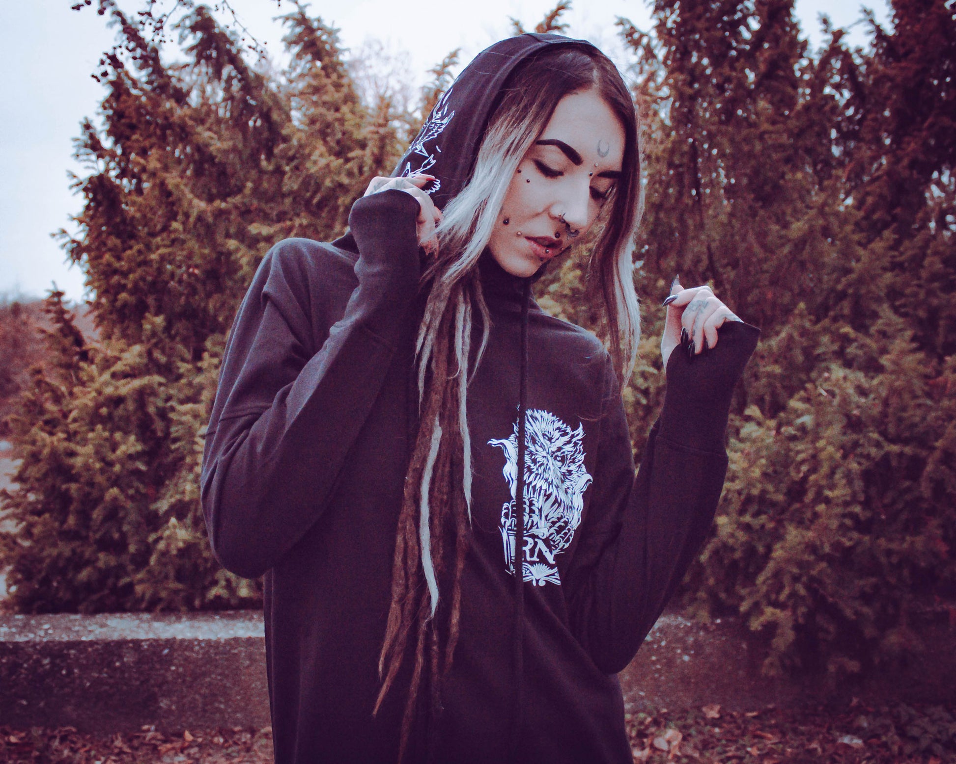 Model "Hedwig" trägt hier unser Hoodie Dress Gowlt in Größe "S"