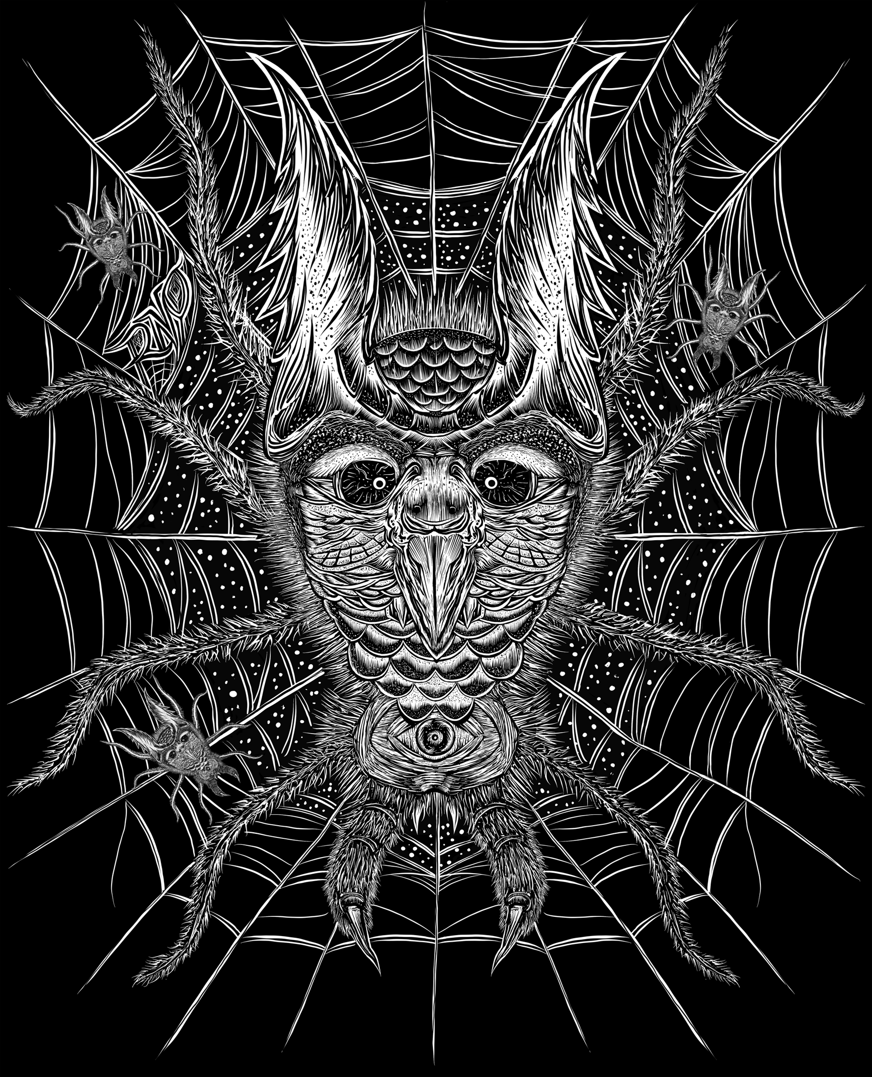 Unsere haarige Spinneneule sitzend im schönen Spinnennetz und ein paar der süßen Babyexemplare runden das ganze Design ab. Wer findet unser "RNO" im Netz versteckt?