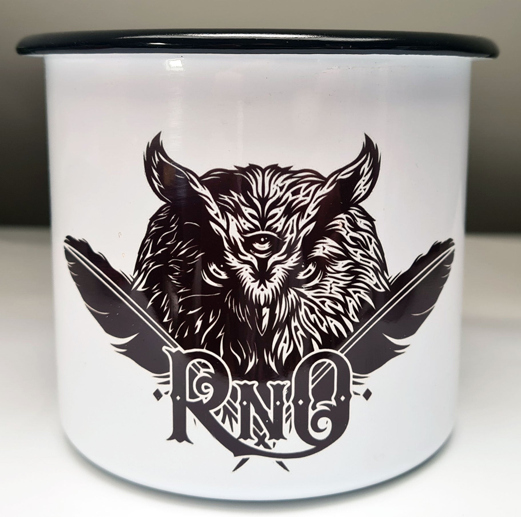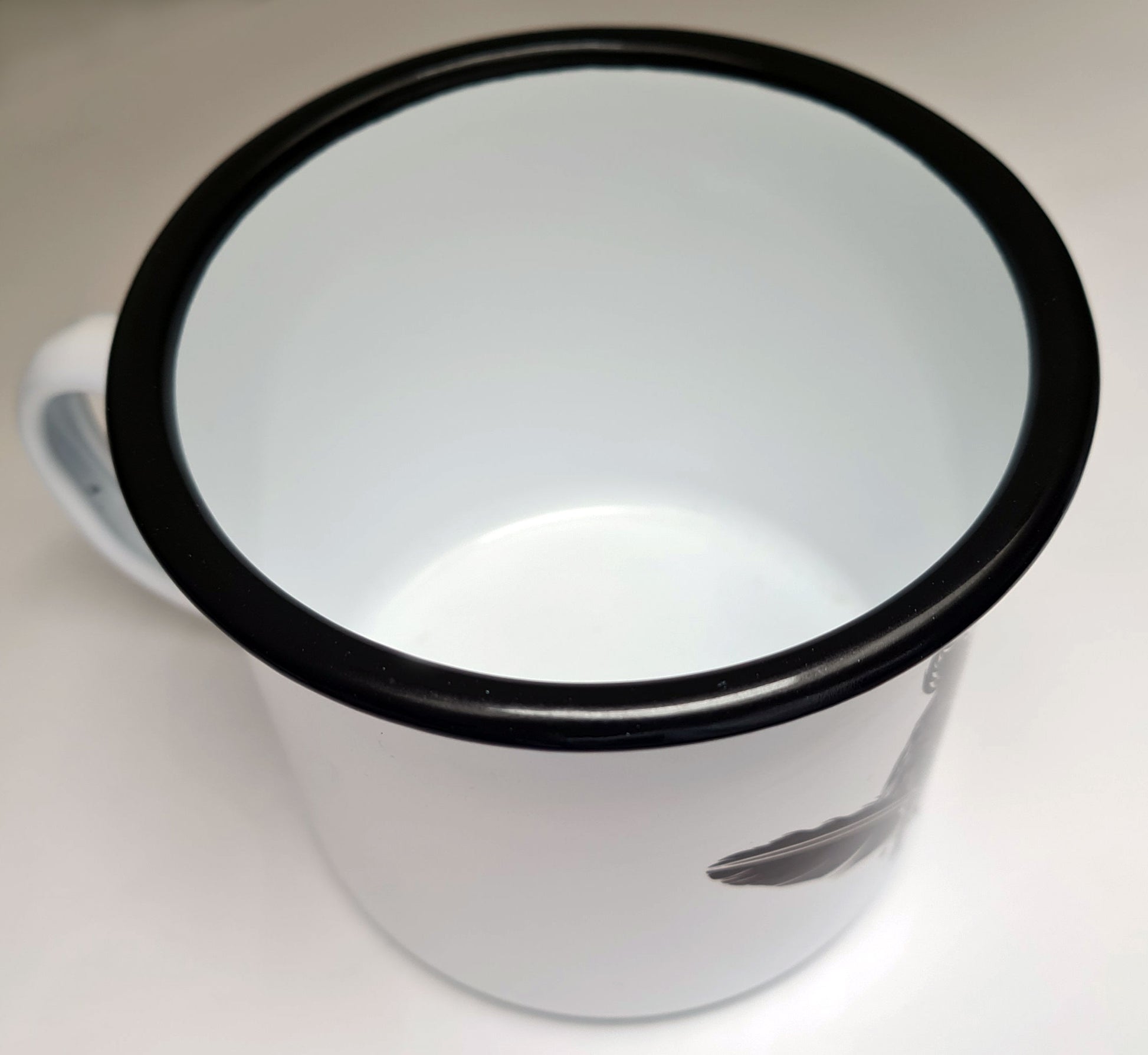 Die schöne, robuste und stabile Metaltasse mit unserem Feather Motiv und das in einer anständigen Größe!!!