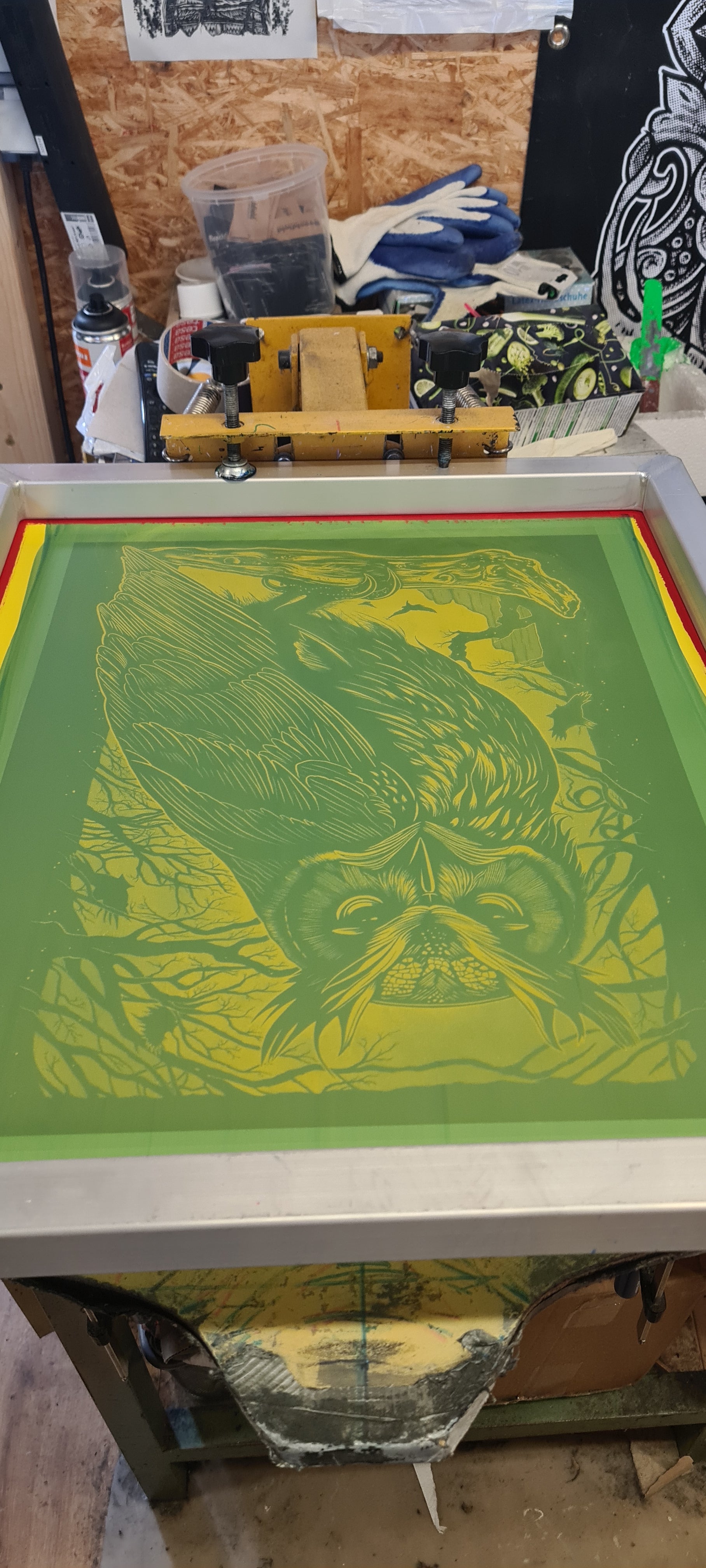Jede Eule wird von uns individuell wie alle unsere Stücke per Hand im Siebdruckverfahren gedruckt.