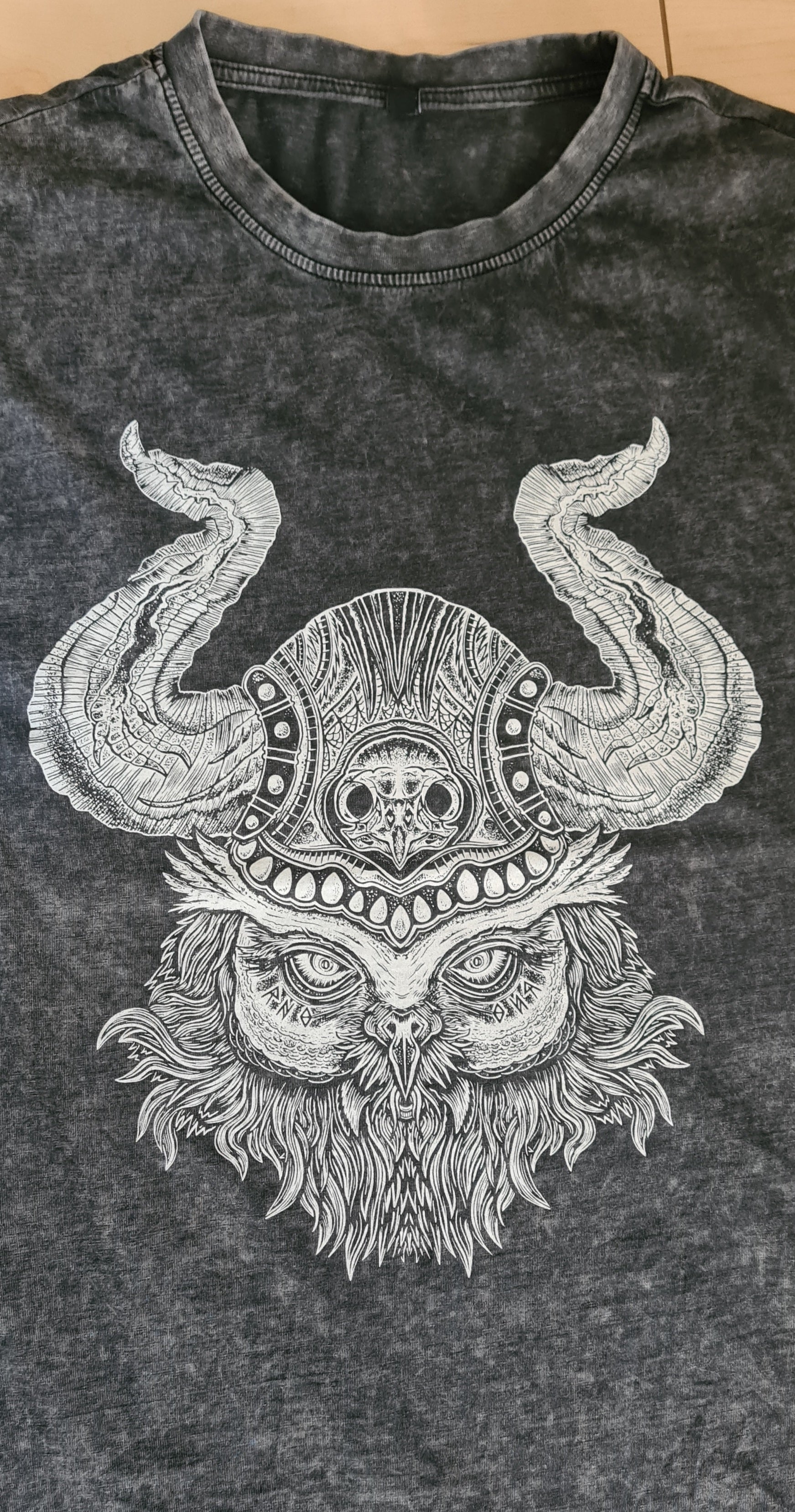 T-SHIRT VIKING OWL ACID WASHED DARKGREY WHITE