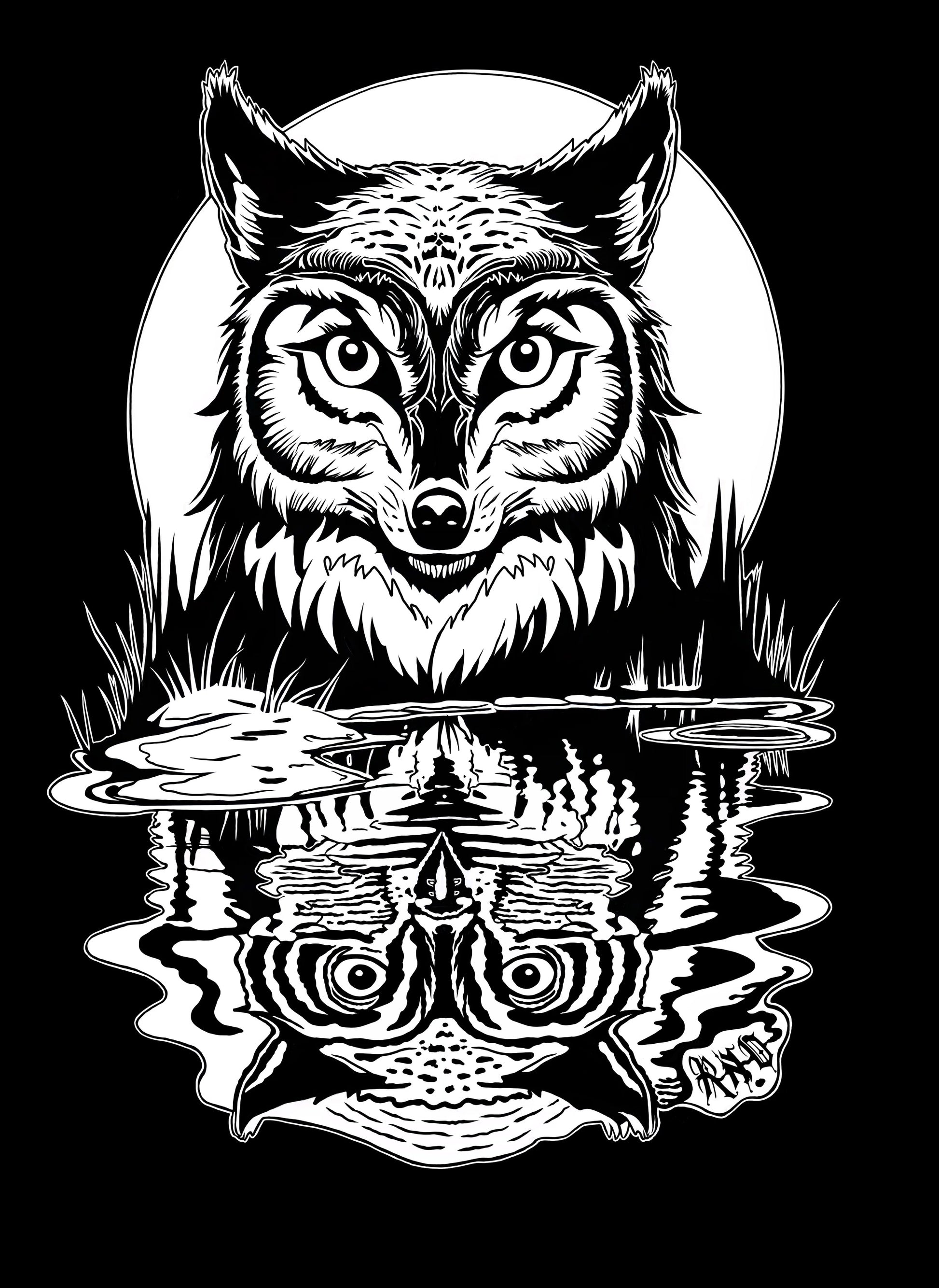 Den Wolf an einem Gewässer im Mondlicht als Eule zu spiegeln ist eine schöne Verbindung für diese zwei tollen Geschöpfe!!!