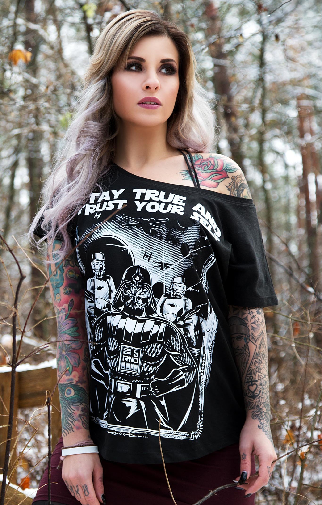 Unser schickes Owlvader Design für die Damenwelt in einem frechen, lockeren Schnitt. Stormtroopers mit Anonymous Masken und ne DarthVader Eule...was will man mehr....In diesem Sinne: Stay true and trust yourself!!! und möge die macht mit euch sein!!!