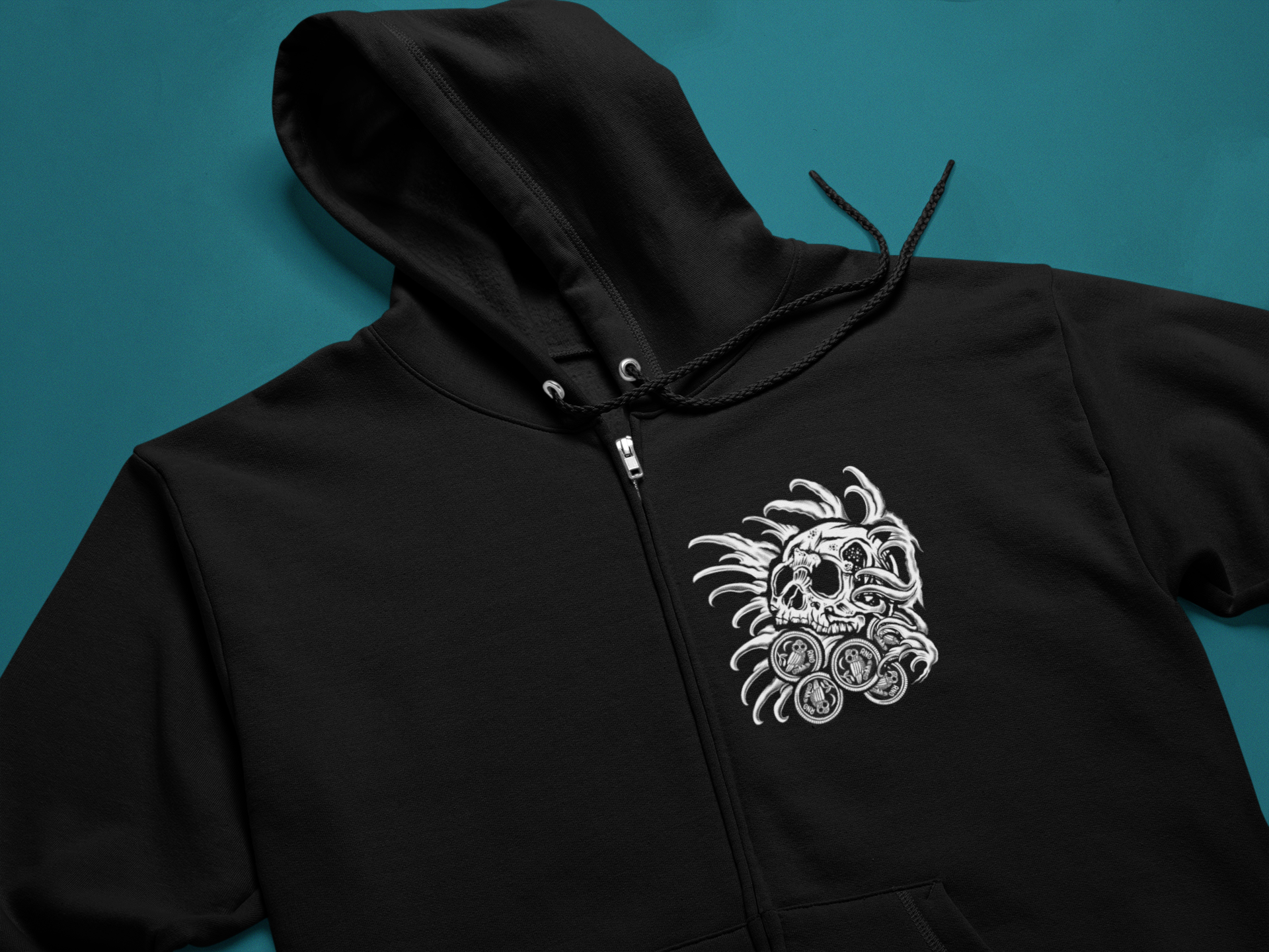 Frontprint "SKULL ´N COINS" auf Brusthöhe